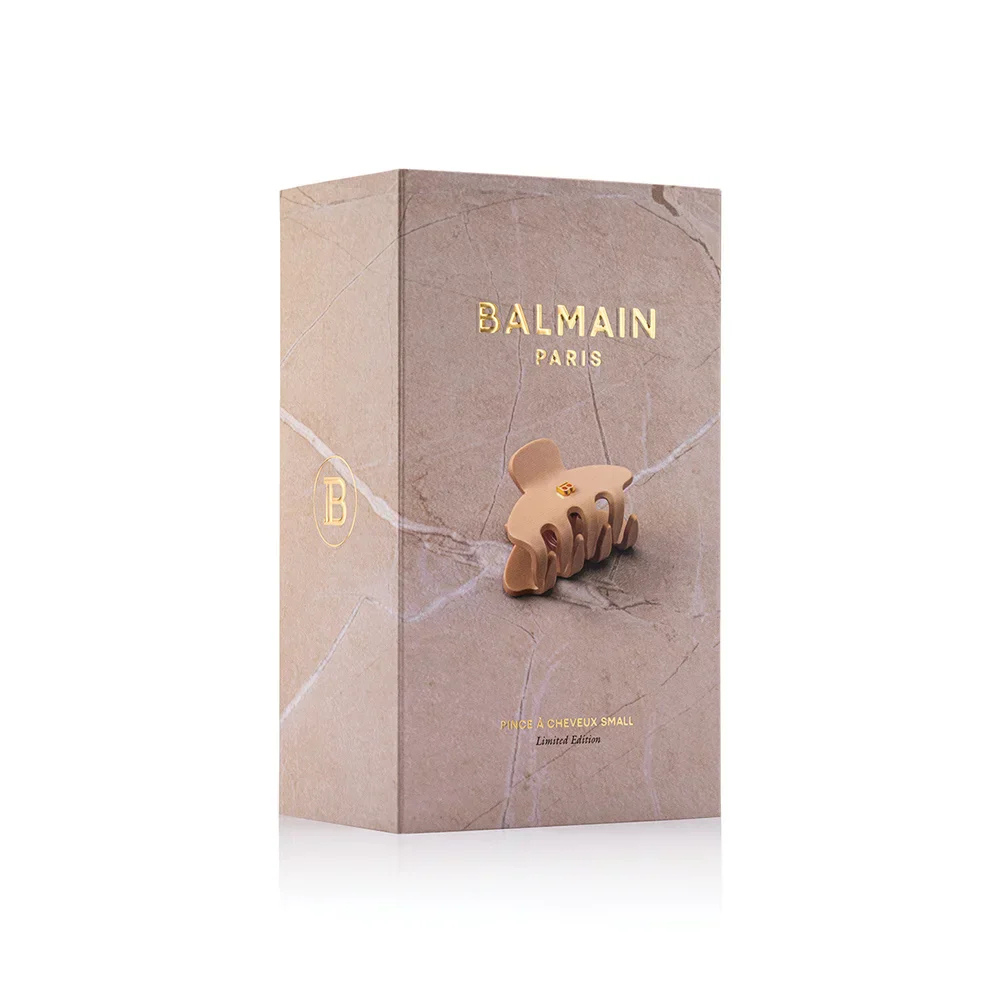 Balmain Hair Clip Small is a small handcrafted claw clip made from durable cellulose acetate and designed with the Balmain’s signature 14K gold plated “B” logo.