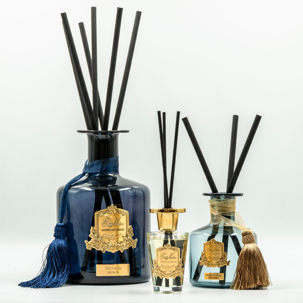Cote Noire diffuser will evenly release fragrance into the air for a period of up to two months using highly absorbent reeds that always retain their colour and shape.