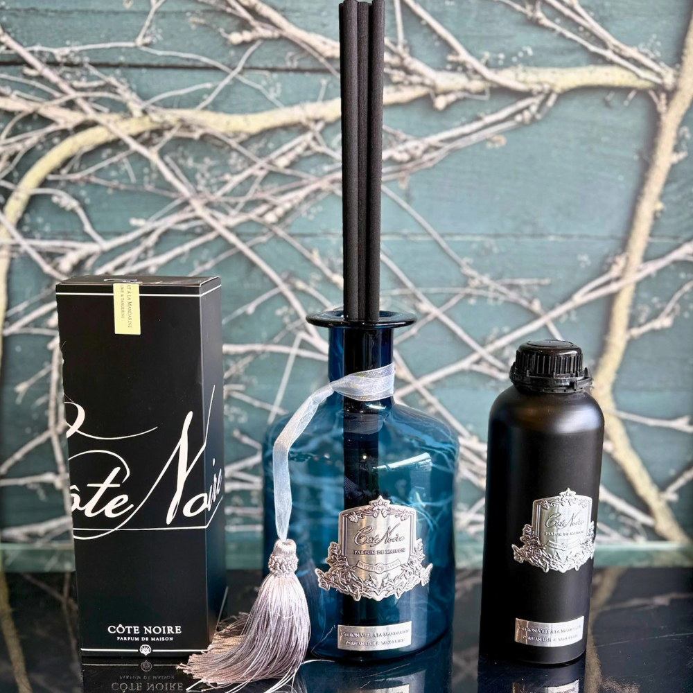 Cote Noire diffuser will evenly release fragrance into the air for a period of up to two months using highly absorbent reeds that always retain their colour and shape.