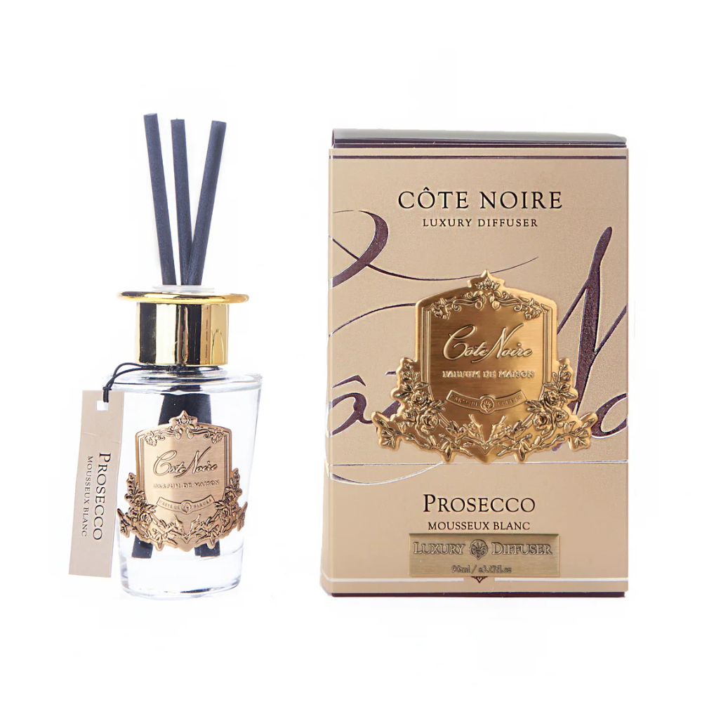 Introducing the Cote Noire Diffuser in Prosecco, a distinguished home fragrance that promises to refresh, captivate, and transform your living environment. Crafted for those who appreciate the finer things, this exquisite diffuser is a crucial enhancement to any space, offering a crisp, invigorating scent that harmoniously blends luxury with a sense of celebration.