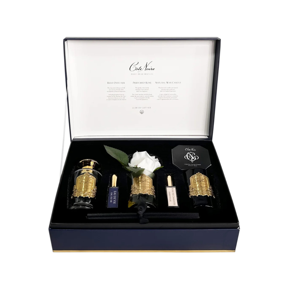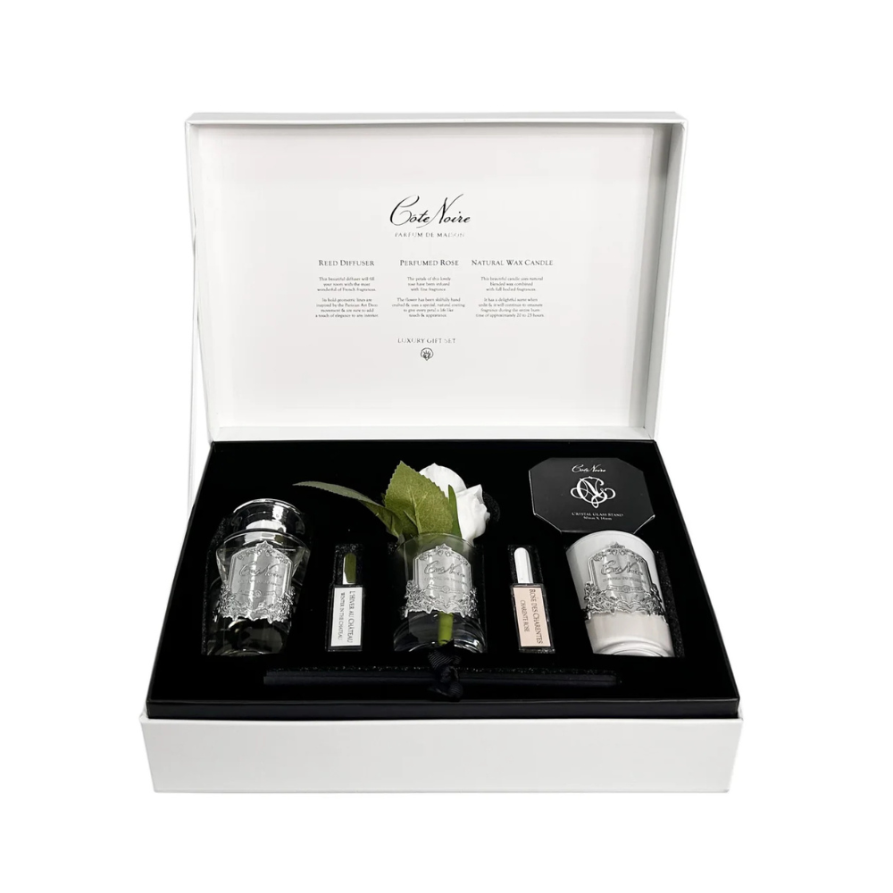 Indulge in the luxury of French countryside living with the Cote Noire Luxury Gift Set. This exquisite collection captures the essence of the idyllic Charente region, bringing sophisticated fragrance into every corner of your home.