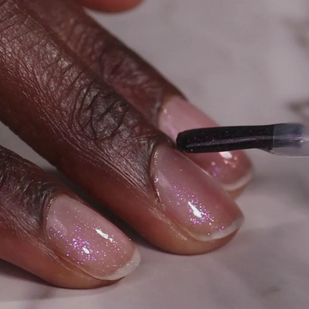 2. Apply 1–2 thin, even coats. One coat gives a subtle shimmer; two coats deliver cosmic radiance.