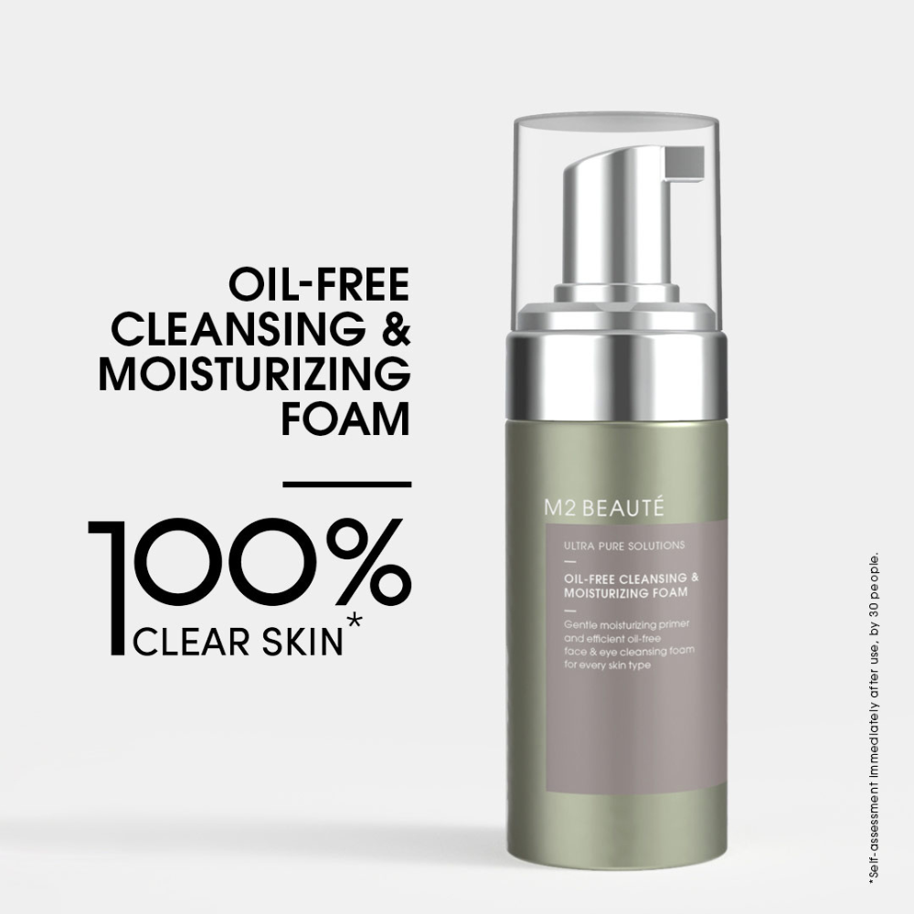 The new OIL-FREE CLEANSING & MOISTURIZING FOAM is much more than just a cleansing foam. Its sulfate- and oil-free formula cleanses the skin in a particularly moisturizing way while creating the ideal basis for subsequent care. When applied, the delicate foam transforms into a mild emulsion that thoroughly removes makeup residue, sebum, and impurities.