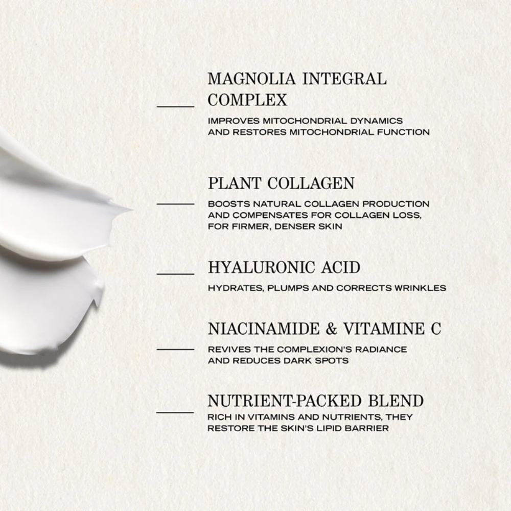 Discover an exceptional youth care treatment designed to meet the needs of even the driest skin: this cream, formulated with a complex of magnolia, plant-based collagen, and niacinamide, helps reverse visible signs of aging.